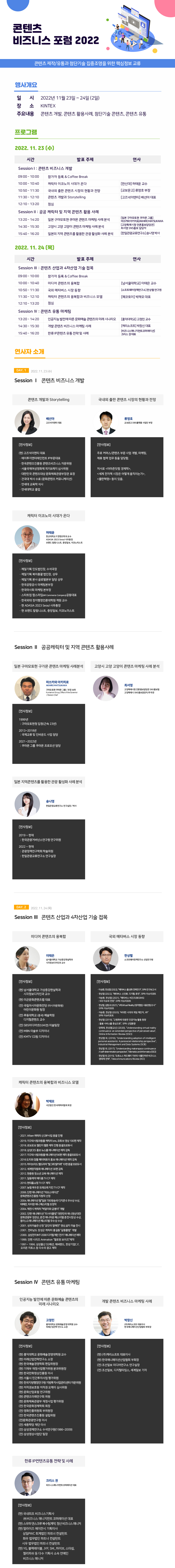 콘텐츠 비즈니스 포럼 2022 초청 연사